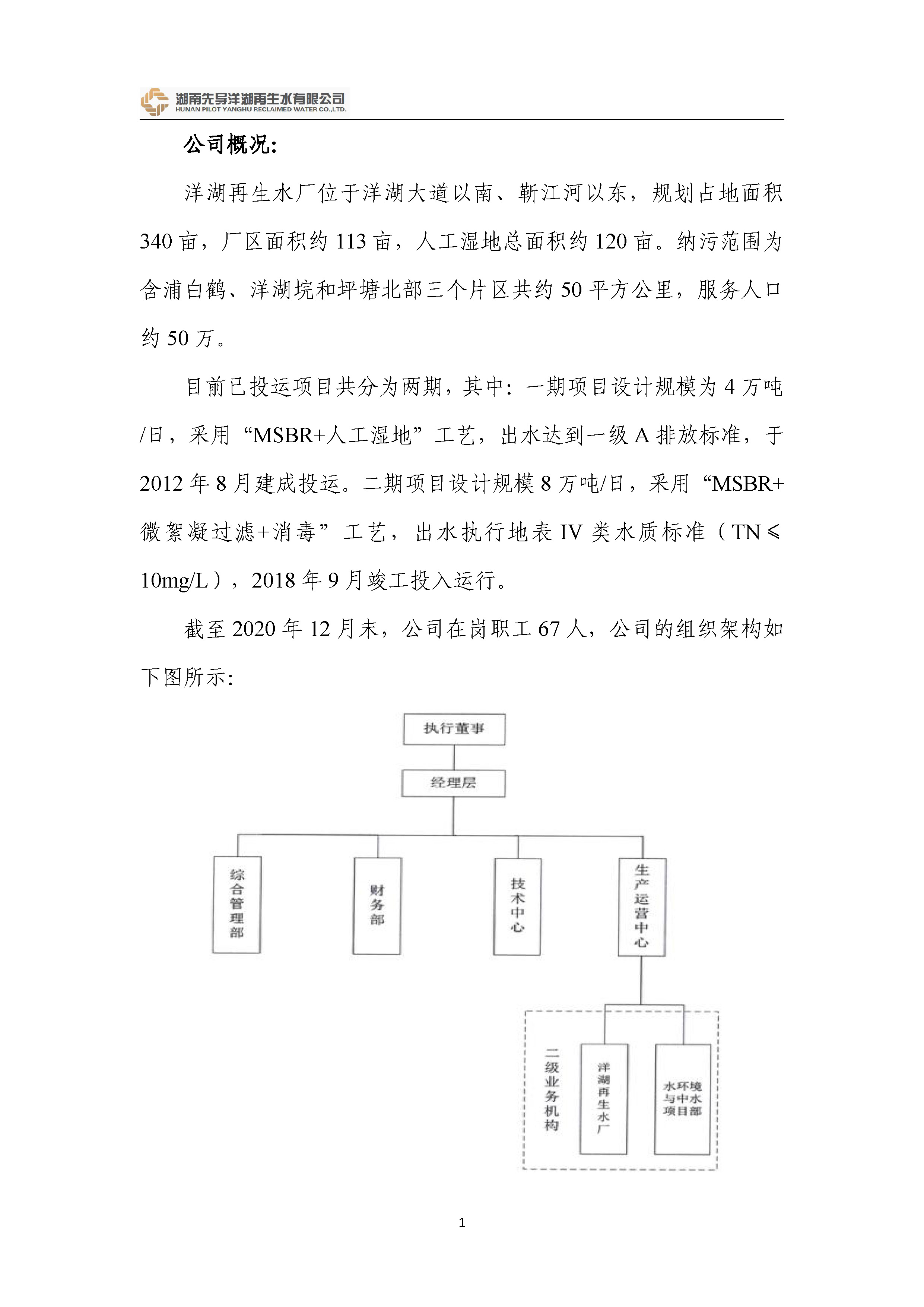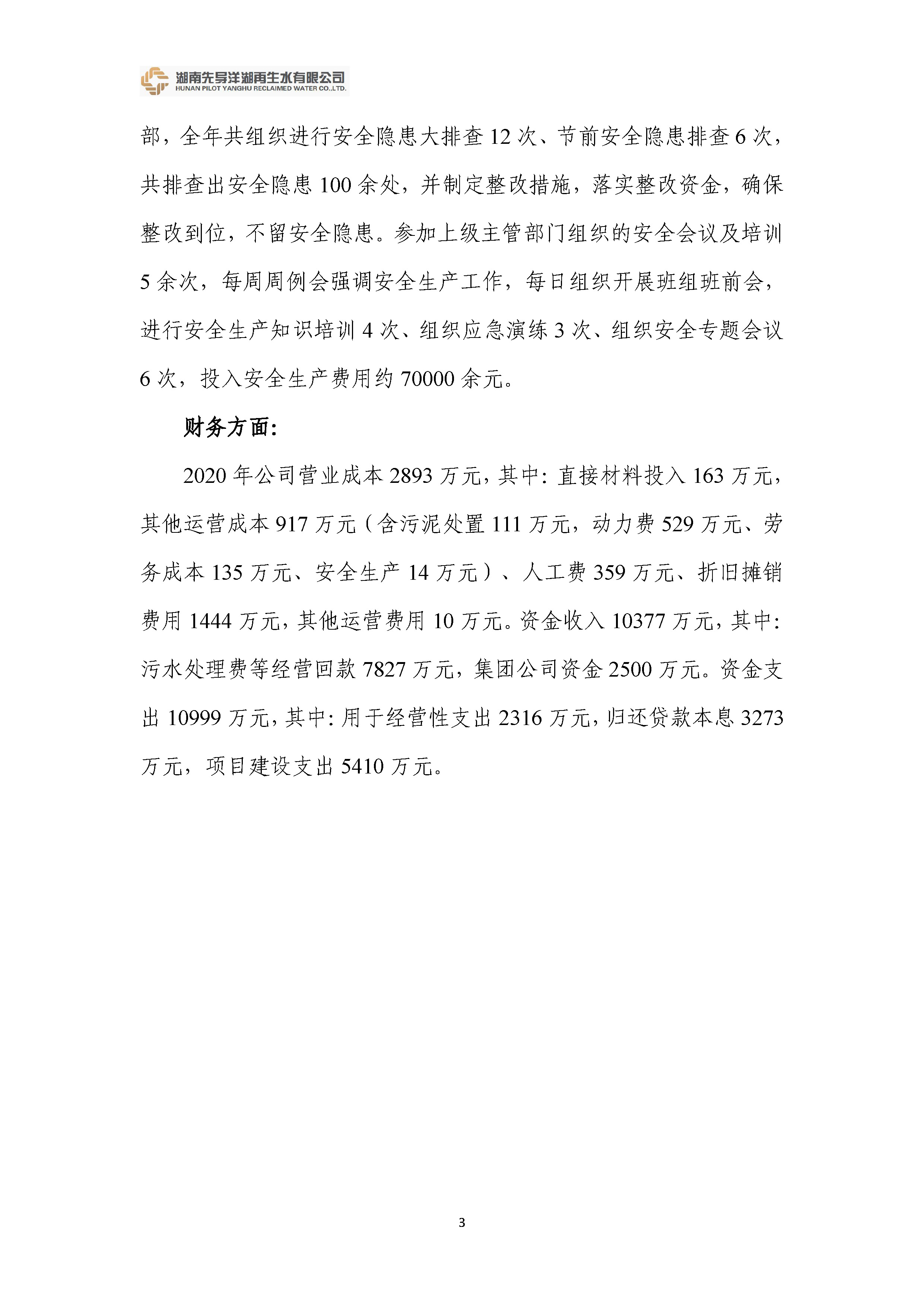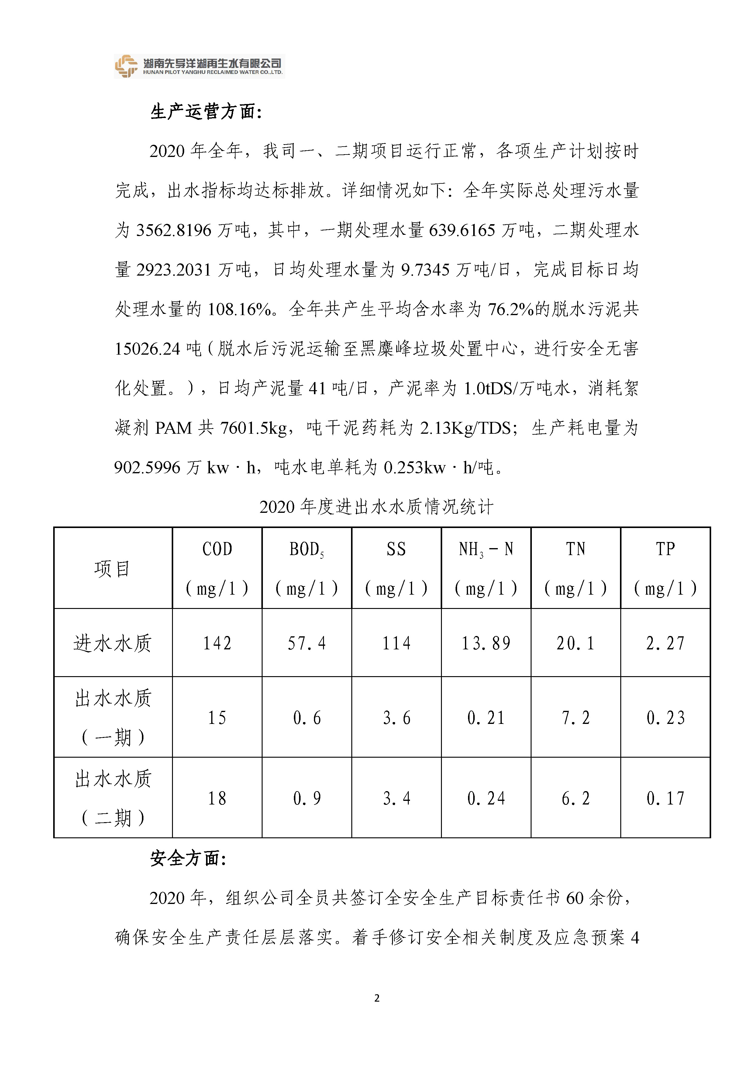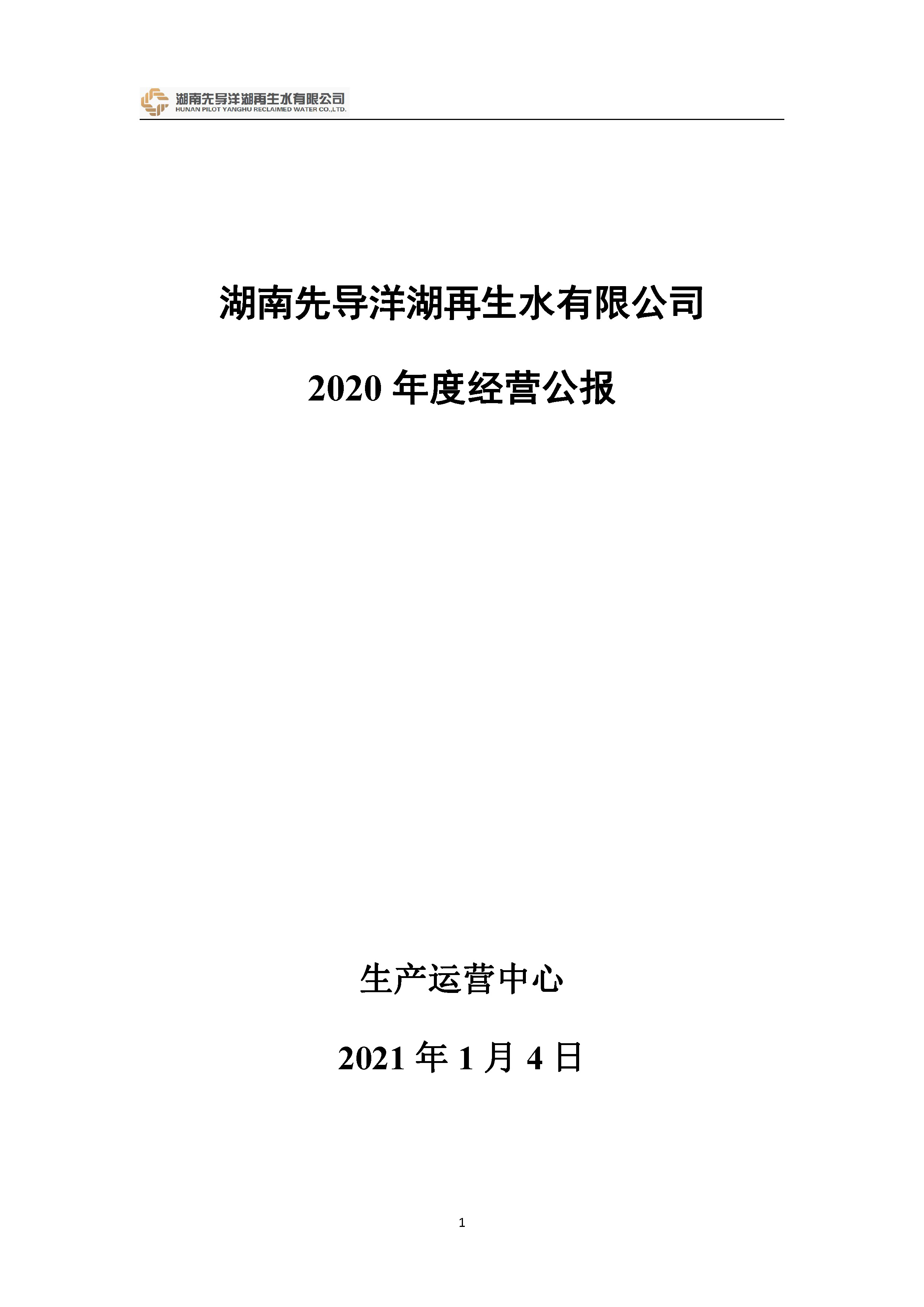 湖南先导洋湖再生水有限公司 2020年度经营公报