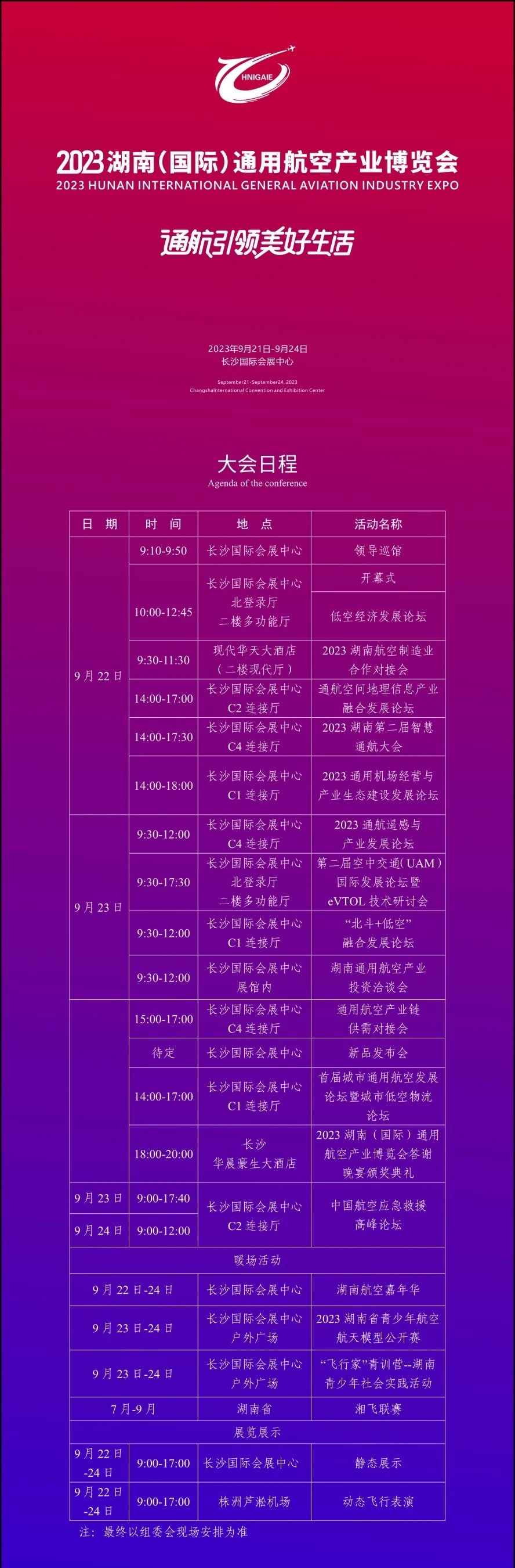 ? ? ? ? 21个省(区、市)组团参展参会,参展企业超过300家,包括航天科技、航天科工等22家央企,大疆、华为、小鹏以及巴西航空工业、贝尔、荷兰莱特兄弟、罗宾逊等国内外26家行业头部企业。? ? ? ??本届博览会也将同步开设线上展,提供在线参展、商业配对、品牌营销等服务,打造线上线下全服务链展会平台。? ? ? ??在长沙国际会展中心中心广场及E4展馆,还将有航天知识科普、VR设备体验、低空运动赛事、精美文创周边、LIVE乐队演出、网红打卡、房车露营、美食集市等活动。