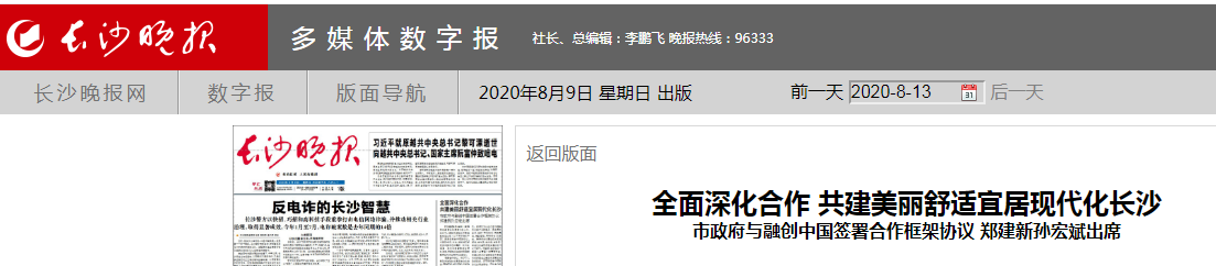 郑建新表示,作为“一带一路”重要节点城市和长江中游城市群核心城市,近年来,长沙在习近平新时代中国特色社会主义思想指引下,着力打造“三个中心”,加快推进现代化长沙建设,经济社会迈入高质量发展的新阶段。今年上半年,长沙疫情防控取得阶段性成效,经济运行企稳回升,全市地区生产总值增长2.2%,主要经济指标增幅居全国省会中心城市前列。期待双方以这次合作框架协议签订为新起点,务实高效合作,按照“精准规划、精美建设、精致管理、精明增长”的要求,携手将长沙建设成为更有颜值、有气质、有内涵、有格调、有品位的美丽舒适宜居的现代化大都市。他强调,各级各部门要进一步营造一流营商环境,尽最大努力为包括融创中国在内的各类企业提供优质高效的政务服务,共同推动合作框架协议的落实落地,开创合作共赢发展新局面。