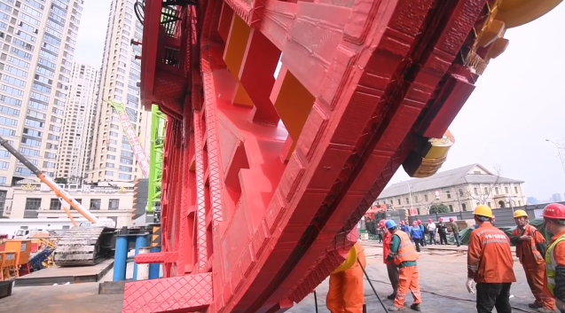 我省直径最大的盾构机刀盘在湘雅路过江通道项目工地顺利下井