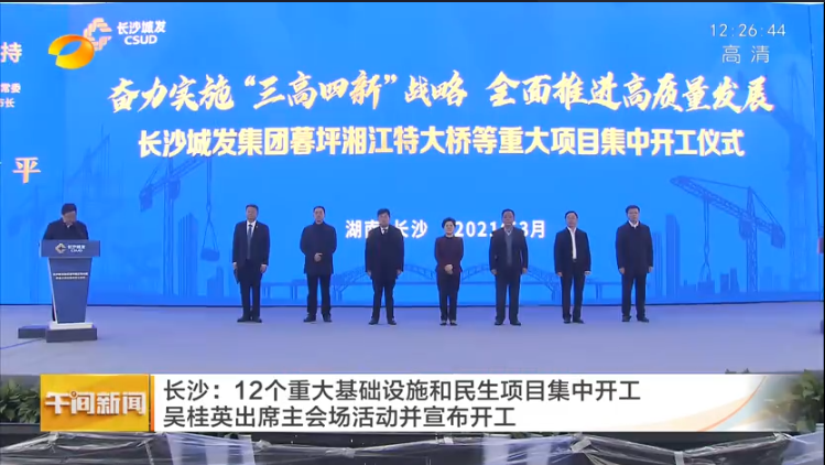 湖南卫视·午间新闻:长沙12个重大基础设施和民生项目集中开工 吴桂英出席主会场活动并宣布开工