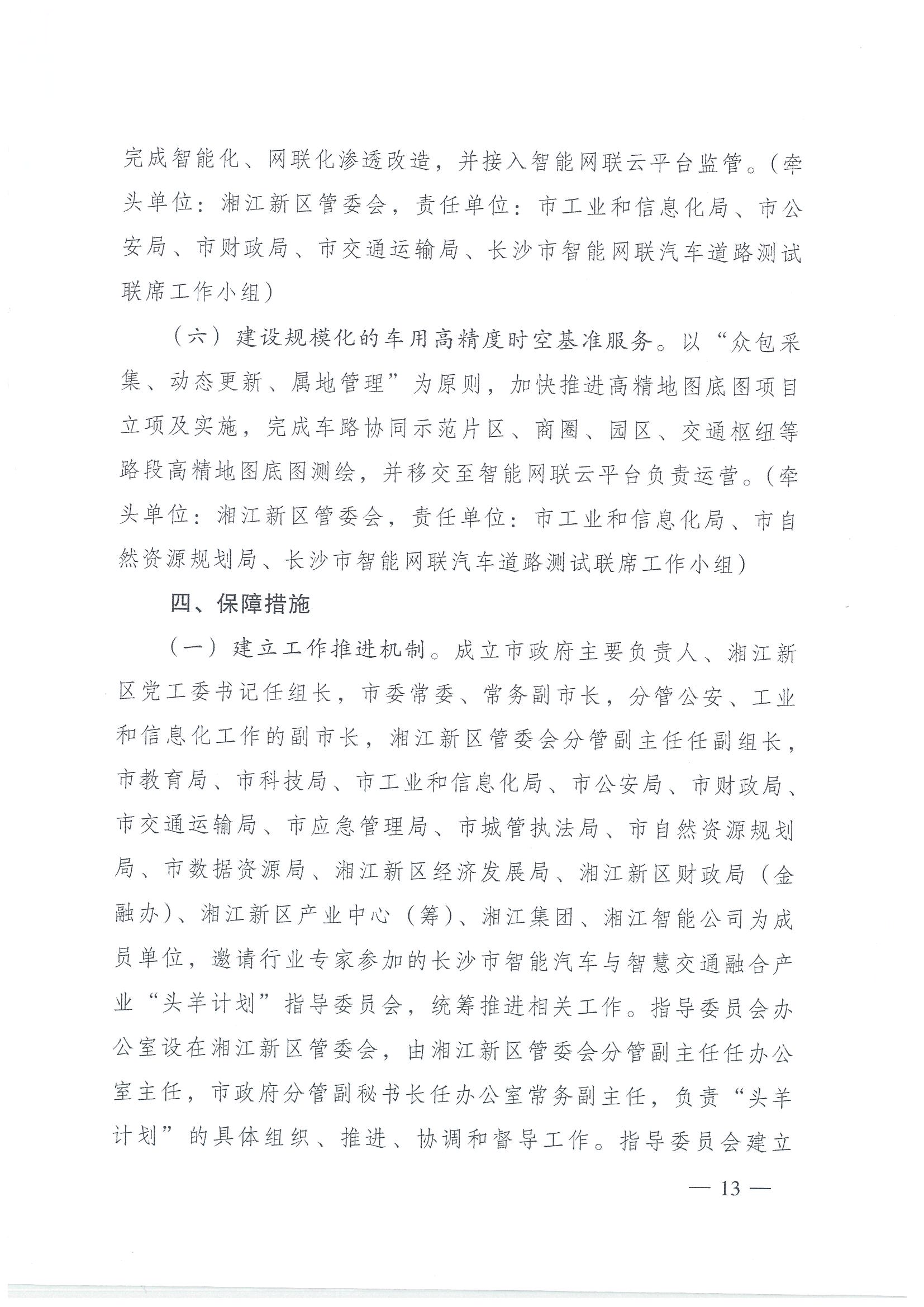 关于印发长沙市智能汽车产业“火炬计划”和“头羊计划”的通知(长政办发[2020]12号)