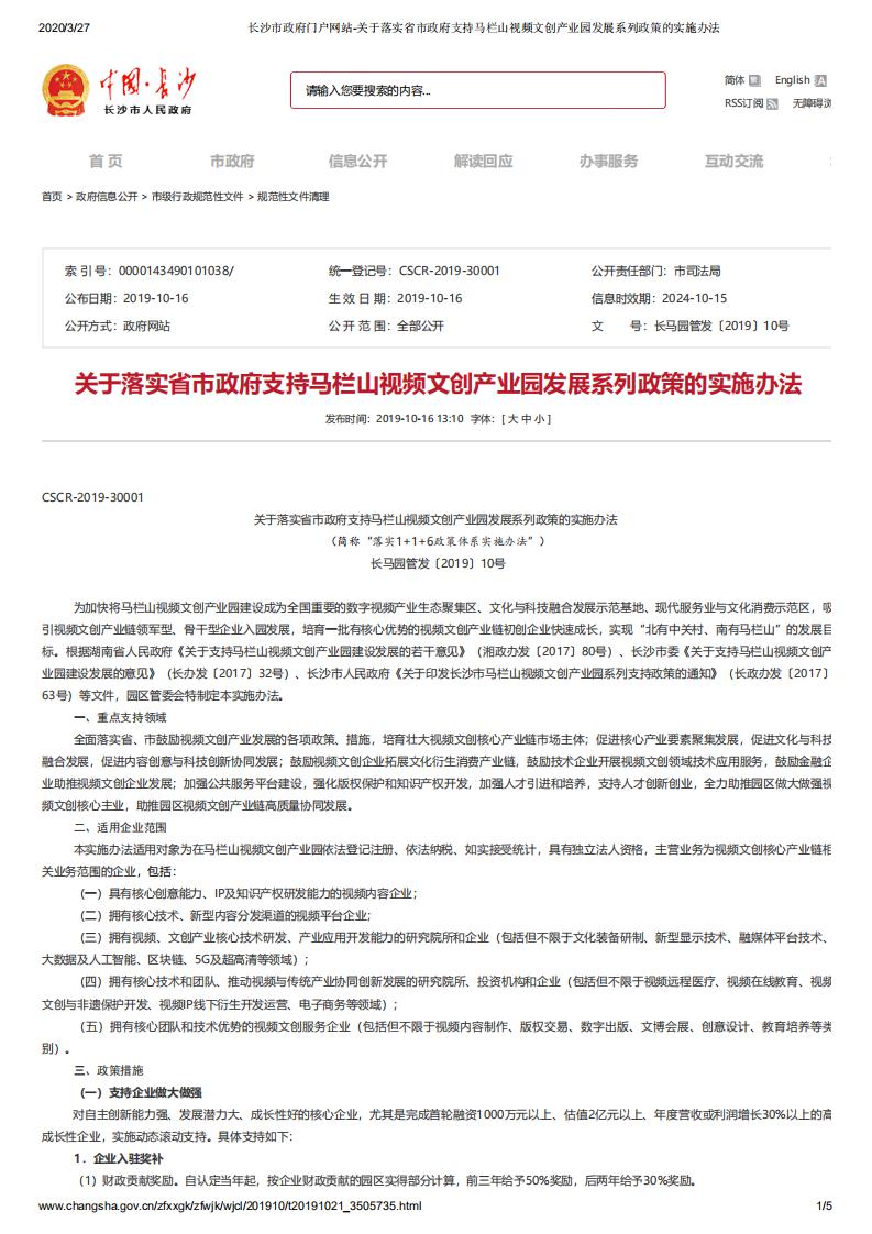 长沙市政府门户网站-关于落实省市政府支持马栏山视频文创产业园发展系列政策的实施办法